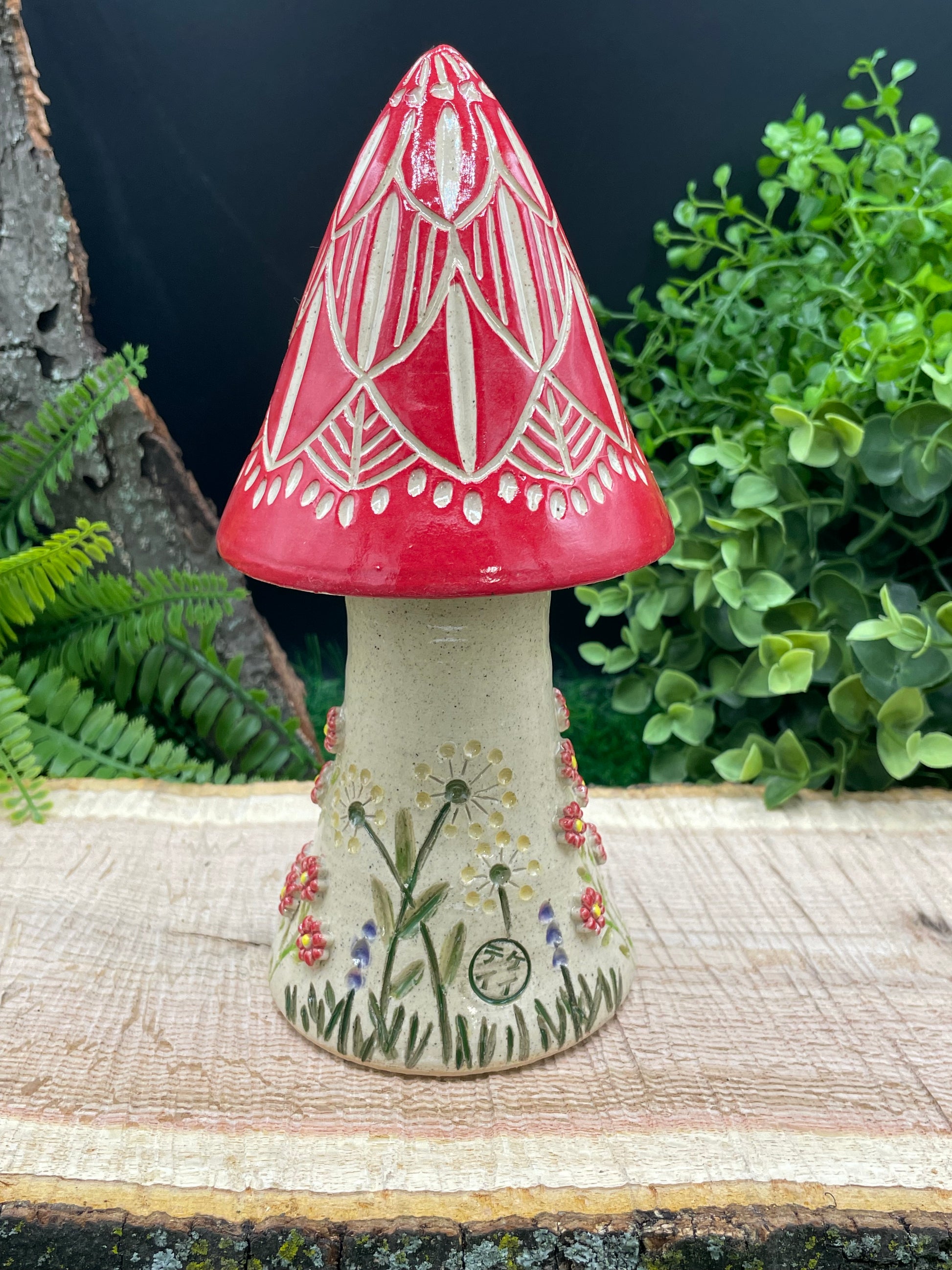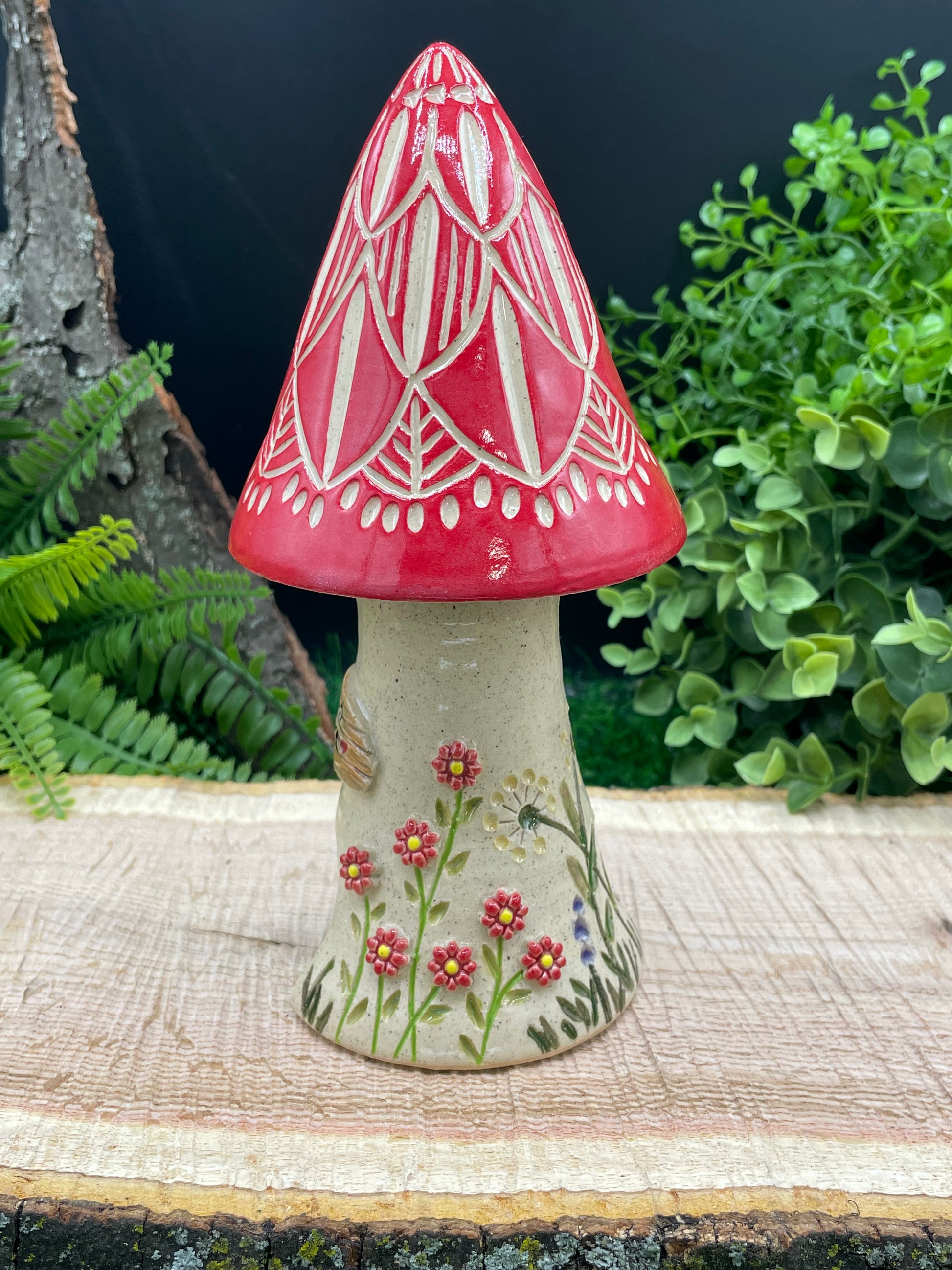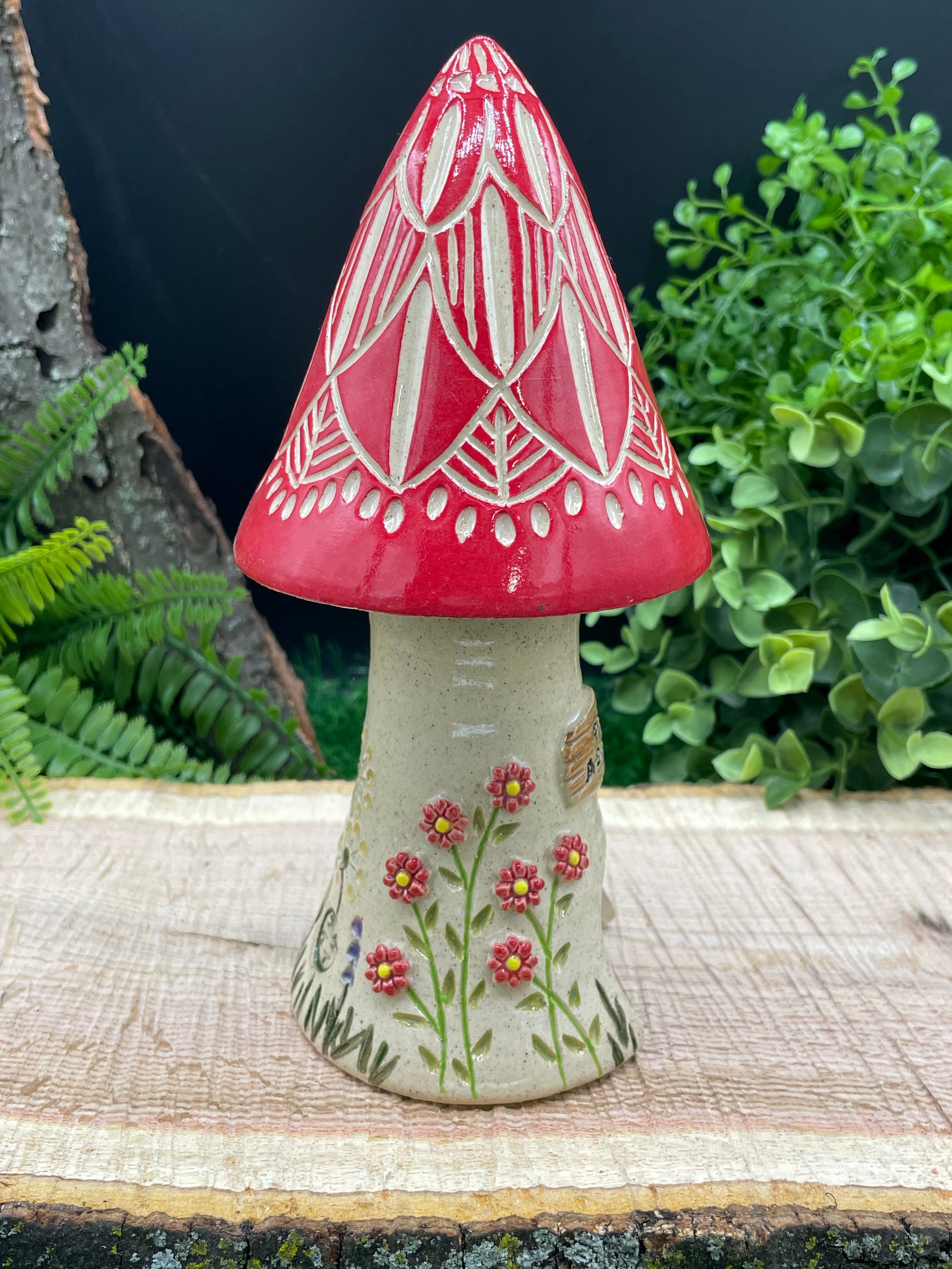 Hop on over to this adorable toad house, featuring hand formed decorative elements and floral accents. Perfect for attracting beneficial amphibians to your garden.
