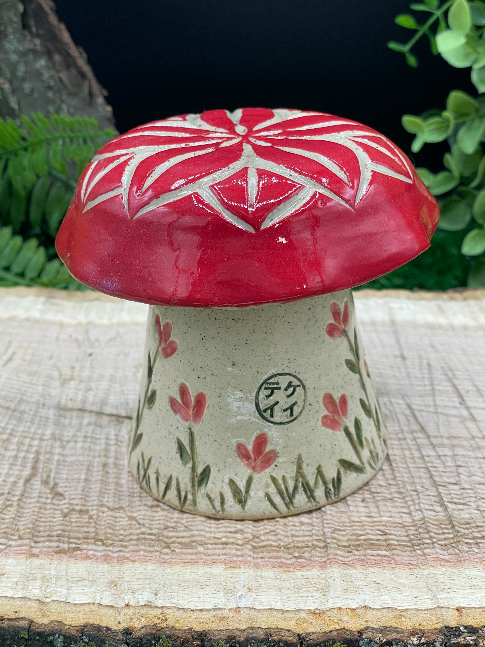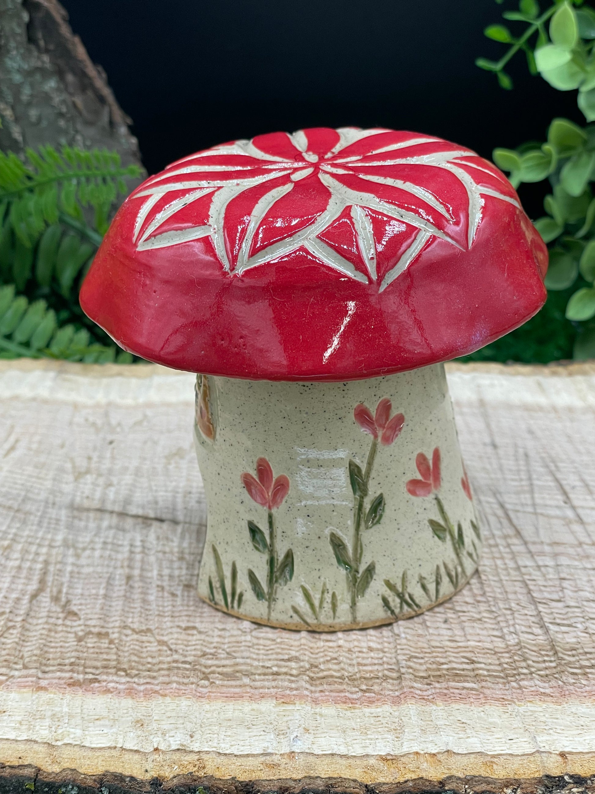 Hop on over to this adorable toad house, featuring hand formed decorative elements and floral accents. Perfect for attracting beneficial amphibians to your garden.
